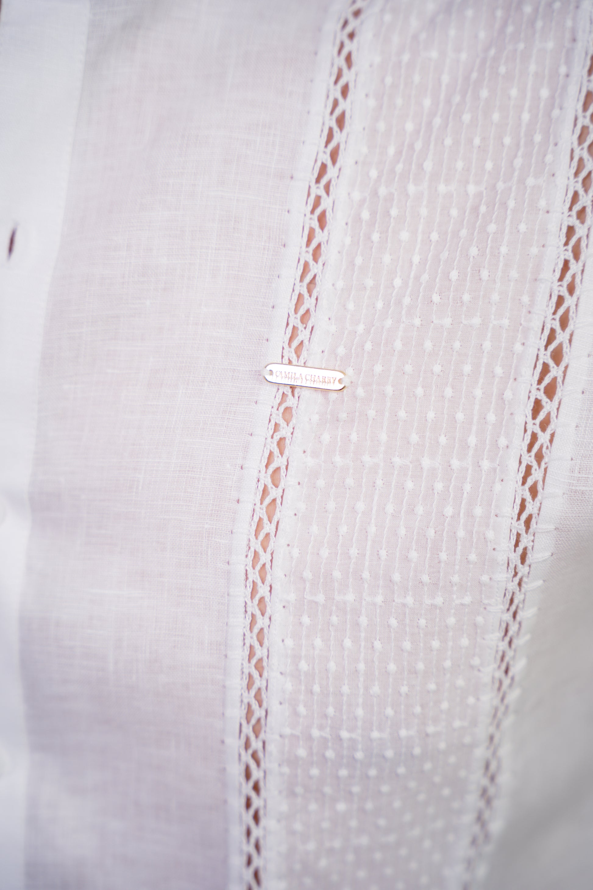 La Guayabera Rosendo equilibra estructura formal y trabajo artesanal con carácter. Su diseño parte de una silueta limpia que permite que el detalle sea protagonista sin perder sobriedad.